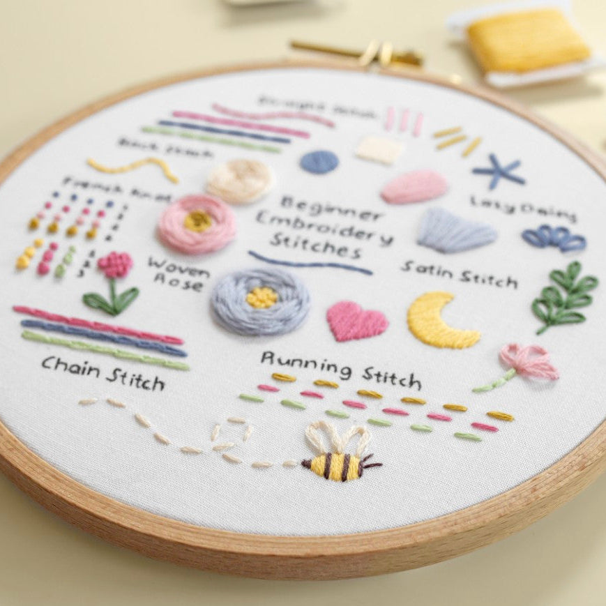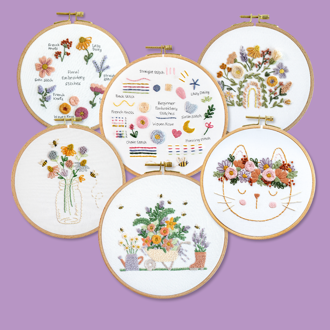 - Four beginner embroidery kits with all the supplies you need to get started with learning embroidery