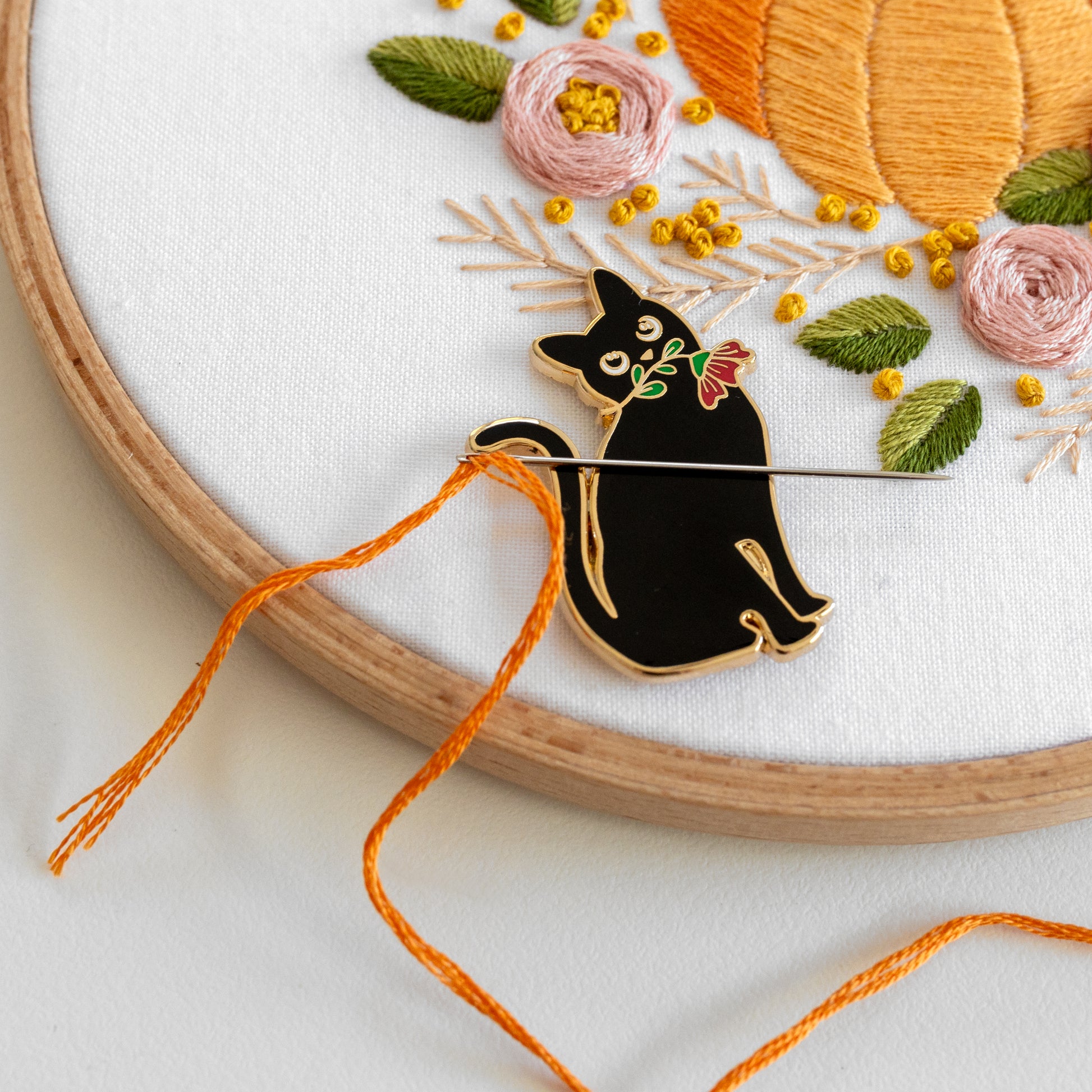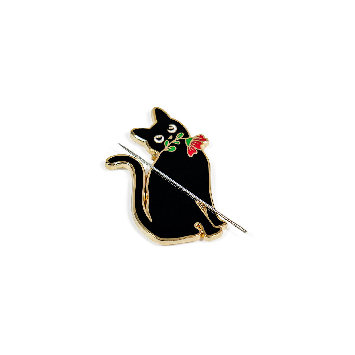 The Black Cat Needle Minder measures 2.7cm wide by 4.2cm tall.