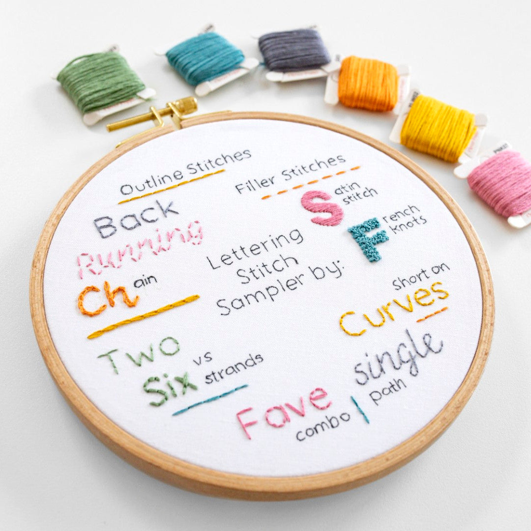Four stitch sampler beginner embroidery kits - with all the supplies you need to get started with learning embroidery