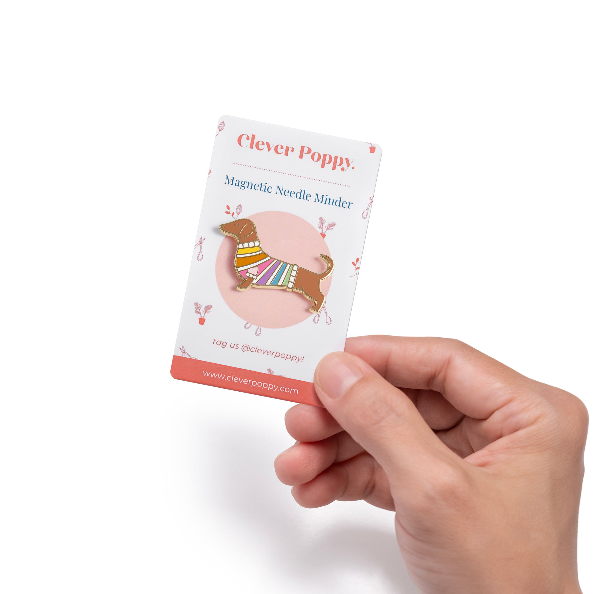 Our magnetic Needle Minders are made with hard enamel and two sturdy magnets.
